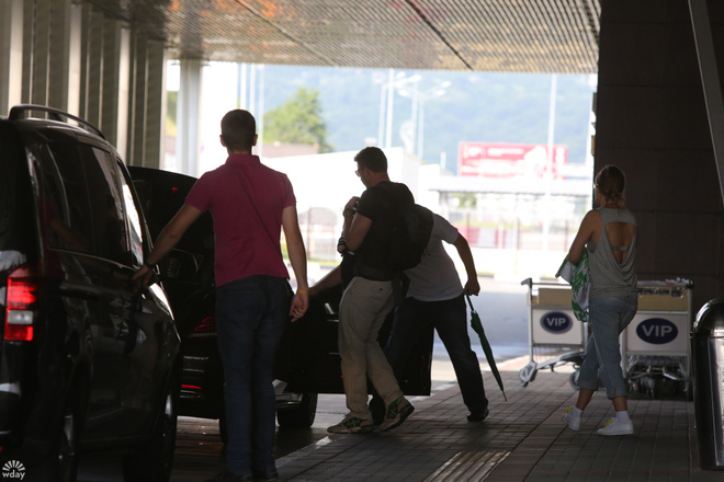 Звездные персоны покинули аэропорт в спешке. Выйдя из здания, семья Собчак-Виторган и еще одна женщина (предположительно это могла быть няня Платона) сели в черный Mercedes представительского класса и направилась к гостинице, в которой планируют пробыть вплоть до отъезда в Москву.