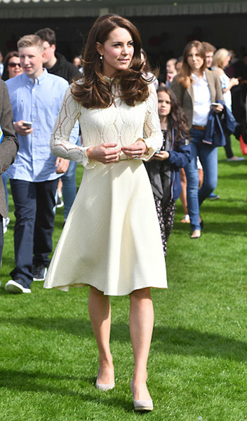 А будучи супругой принца, она нарушала протокол, выходя в свет в одном и том же платье, а также позволяла себе носить слишком дешевые вещи стоимостью меньше 400 долларов. Не раз обращали на себя внимание длина и крой нарядов Кейт: юбки-солнце, разлетающиеся на ветру так, что становились видны ноги и белье, приводили королеву в бешенство. Из обуви Кейт запретили носить танкетку, которую она очень любит.