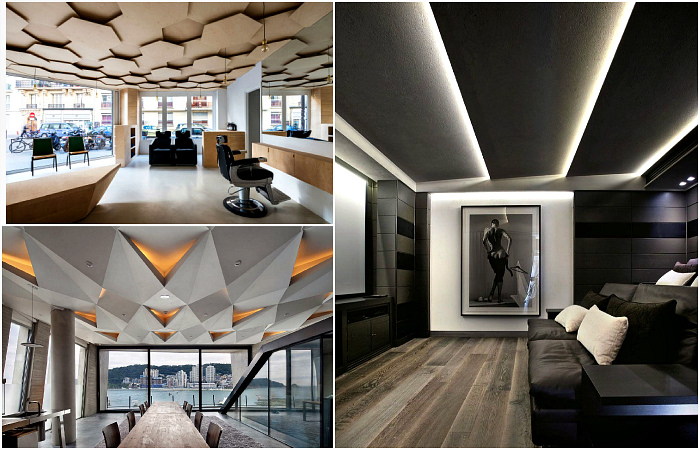 Потолок в доме не менее важная деталь, чем стены или потолок. Поэтому владельцы домов и квартир стараются всеми силами его облагородить. Особой популярностью пользуются натяжные потолки. С ними возможно практически любые эксперименты: потолок в несколько уровней, самые различные рисунки и фотографии на потолке, дизайнерское освещение. Но есть всё же и особые решения, которые предлагают дизайнеры. В этом обзоре собраны варианты оформления потолка, которые преобразят помещение до неузнаваемости.