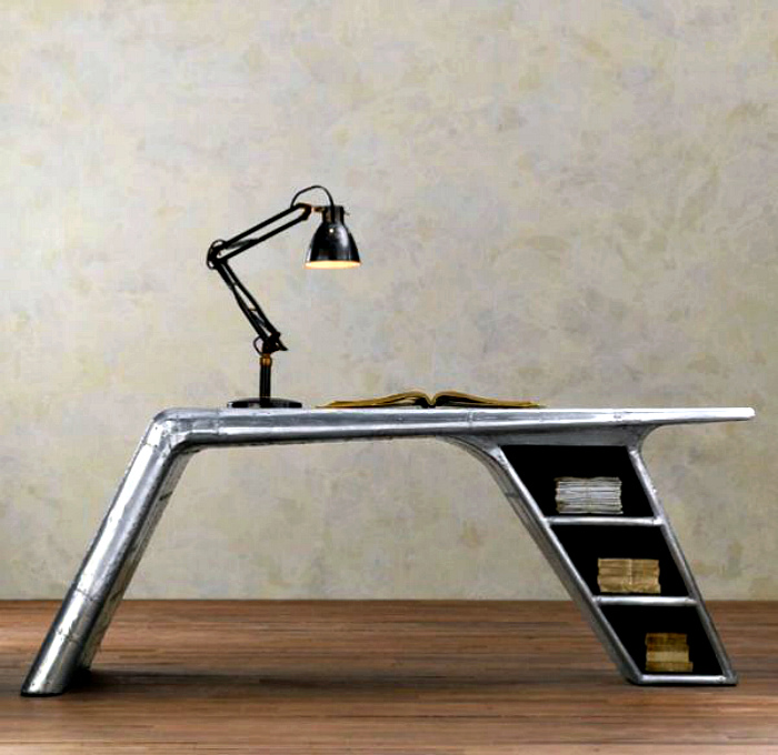 Лаконичный и стильный дизайн письменного стола, сделанного из крыла списанного самолета.