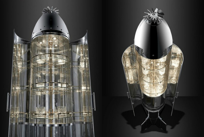 Фантастический шкаф для посуды, сделанный из кассетной авиабомбы и стекла, станет эффектным украшением любого пространства.