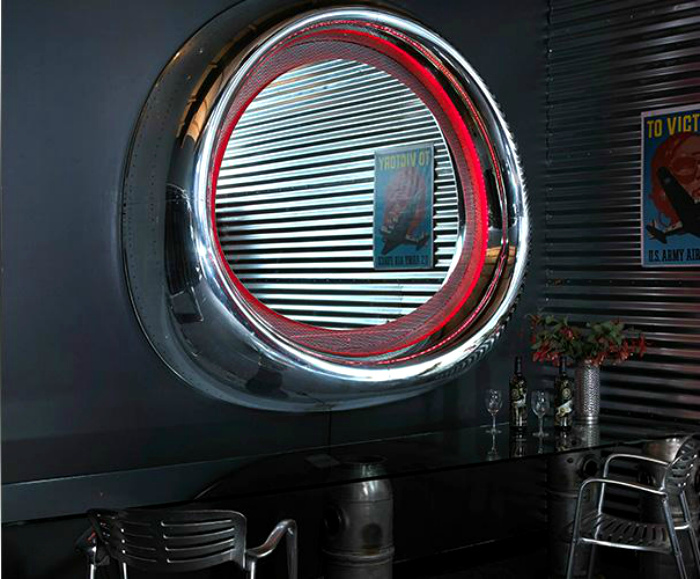 Изумительное зеркало, сделанное из запчасти самолета Boeing 737, дополнит и украсит интерьер любой ванной комнаты.
